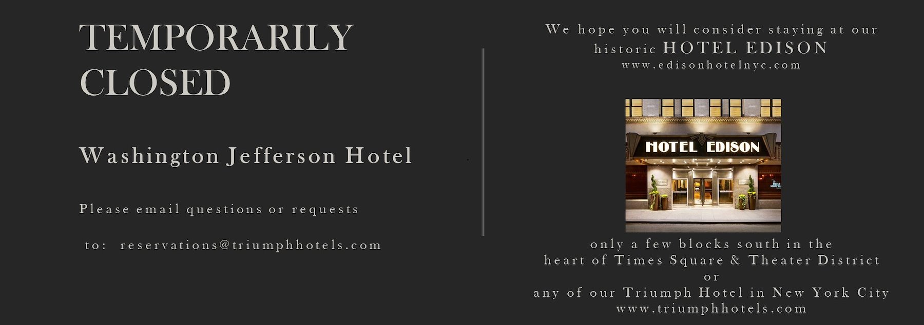 Plan your NYC escape to the Washington Jefferson Hotel in Midtown Manhattan and be in the heart of it all. With Broadway shows, Rockefeller Center, and Central Park just minutes away, our hotel puts the best of the Big Apple at your fingertips. Experience exceptional hospitality in Manhattan's Theater District at the Washington Jefferson, the best budget-friendly hotel.